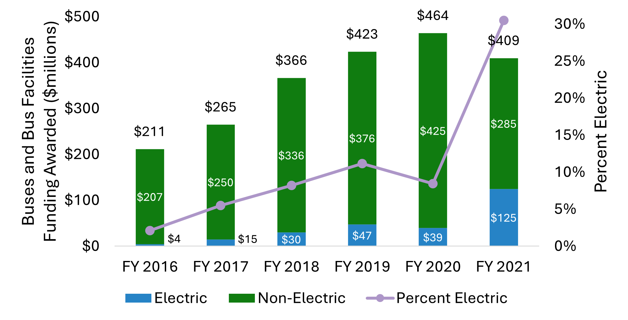 On August 16, 2022, the FTA announced the Fiscal Year 2022 Buses and Bus Facilities awards. More than $350 million was awarded for electric buses, representing 65 percent of total funds awarded.