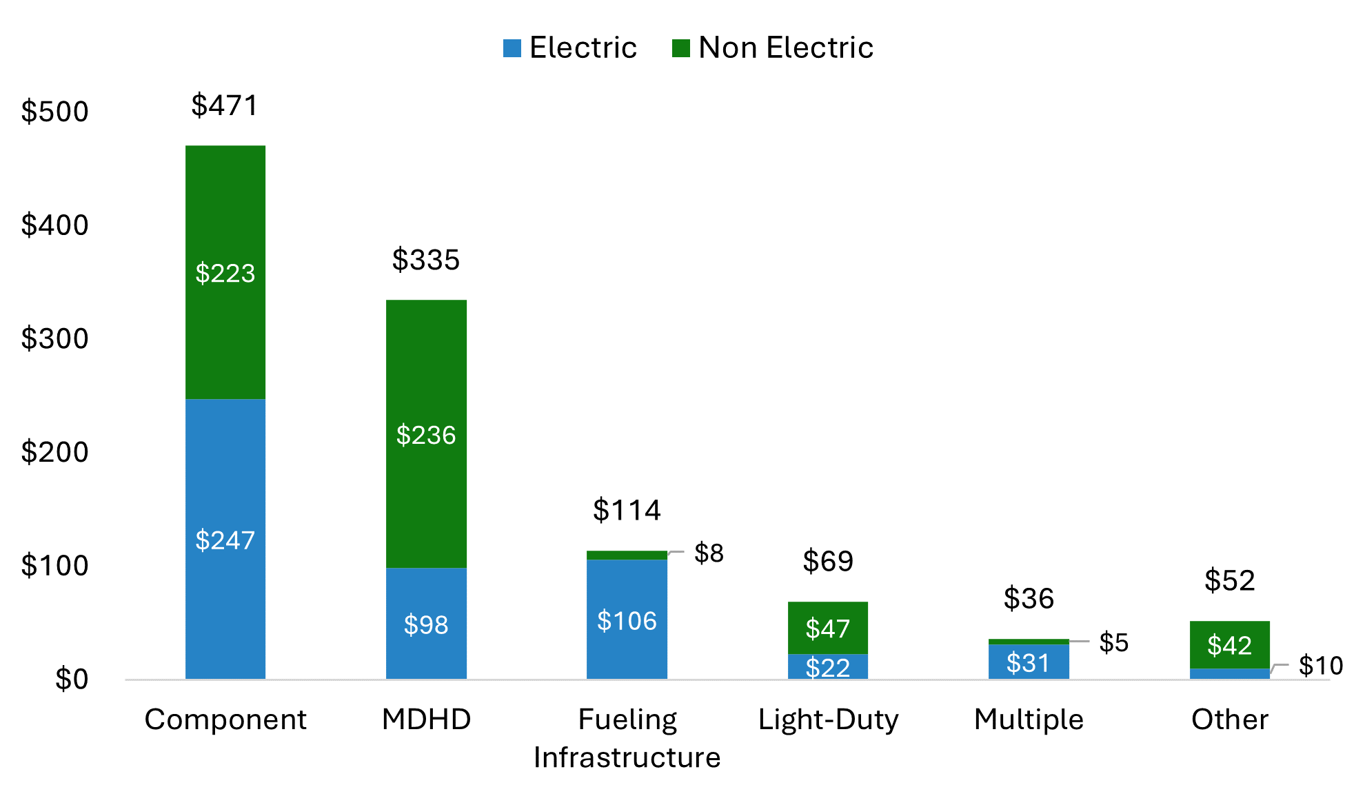 * EV funding includes funding for electric vehicles, EV charging infrastructure, and EV batteries.