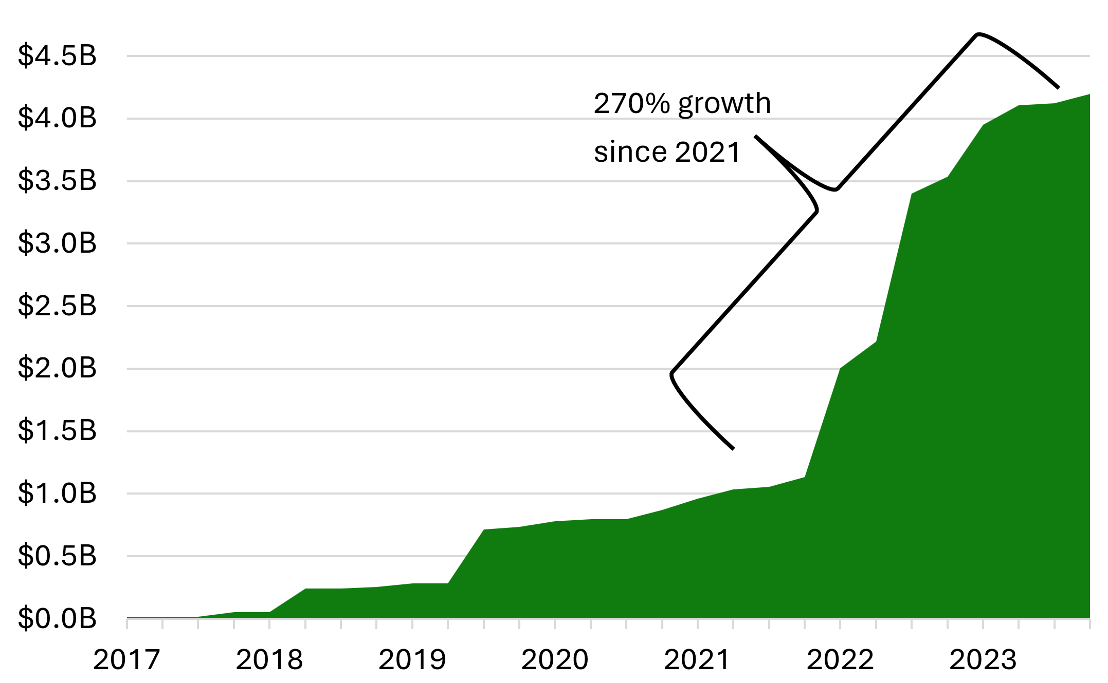 Figure 1: Estimated cumulative investments in MDHD charging by announcement date as of December 2023
