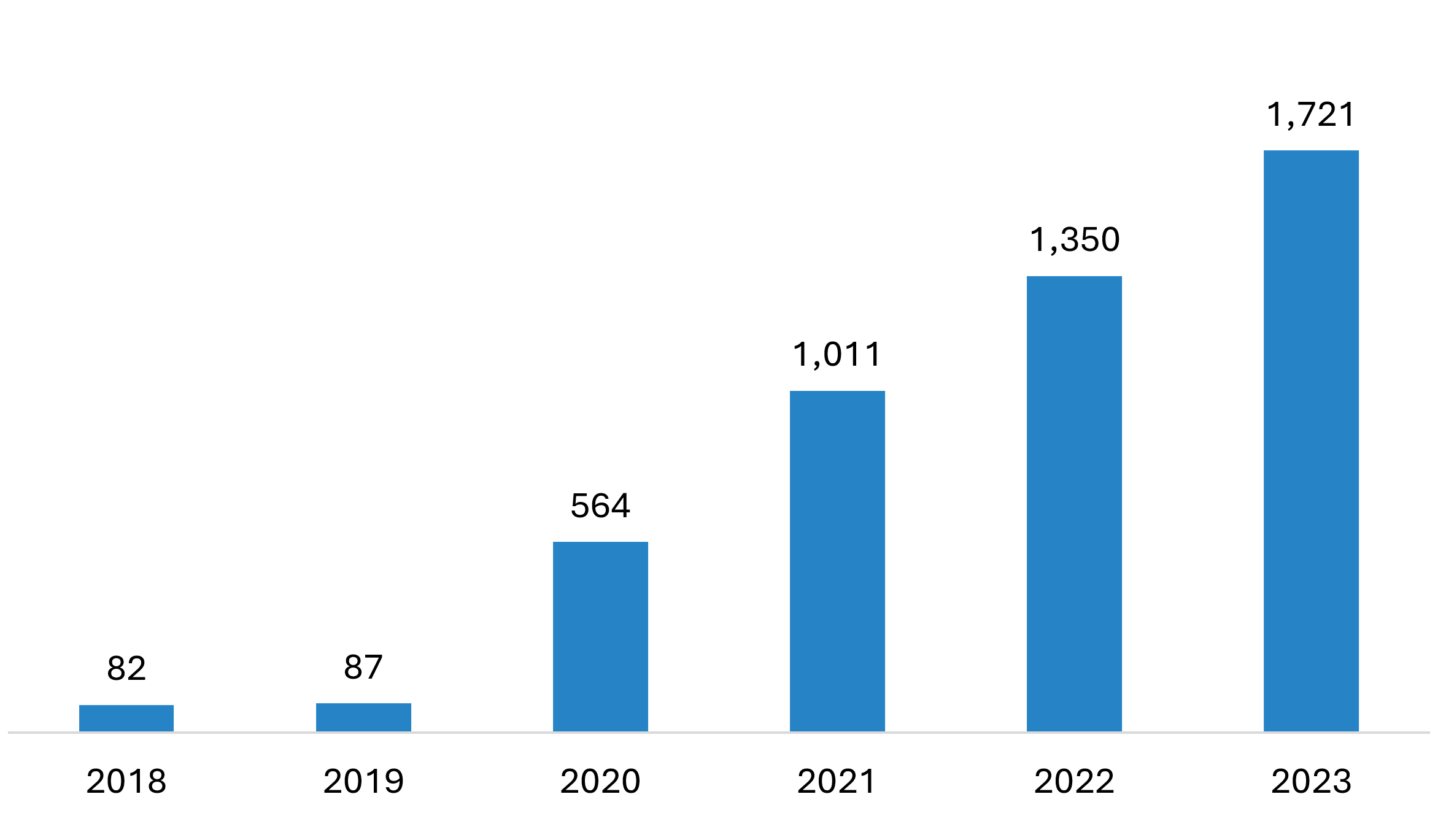 Figure 4: DCFC ports at sites well-suited for MDHD charging by year (from AFDC data)