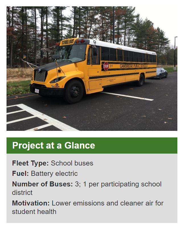 A $2 million pilot project, funded through the Regional Greenhouse Gas Initiative, allowed three school districts to purchase Type C electric school buses and Level 2 bidirectional vehicle-to-grid (V2G) charging stations to test the technology in cold weather environments in Massachusetts.