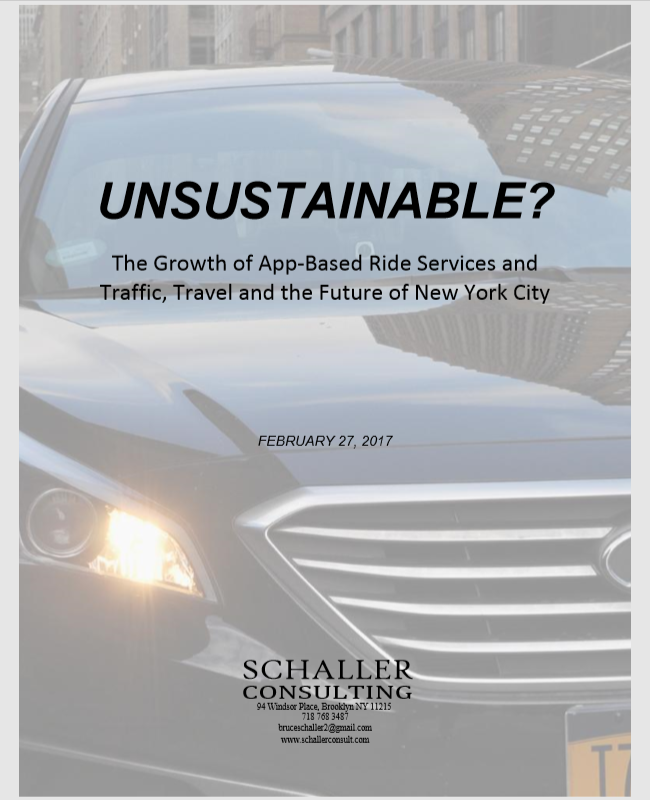 This report presents findings from a detailed analysis of the growth of app-based ride services in New York City, their impacts on traffic, travel patterns and vehicle mileage since 2013, and implicat...