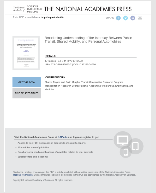 This resport explores how transportation network companies (TNCs) such as Uber and Lyft are impacting the use of public transit and personal automobiles....
