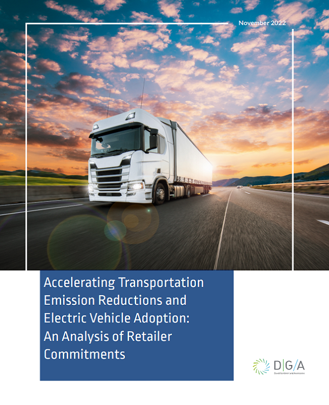 This Report summarizes major findings from data on the 149 retailers included in DGA’s Corporate Transportation Decarbonization Tracker, analyzes challenges to and opportunities for increased EV adoption, and highlights specific retailers’ bold commitments and innovative practices with regard to vehicle electrification, including initiatives related to EV chargers and medium- and heavy-duty electric vehicles (MHD EVs).
