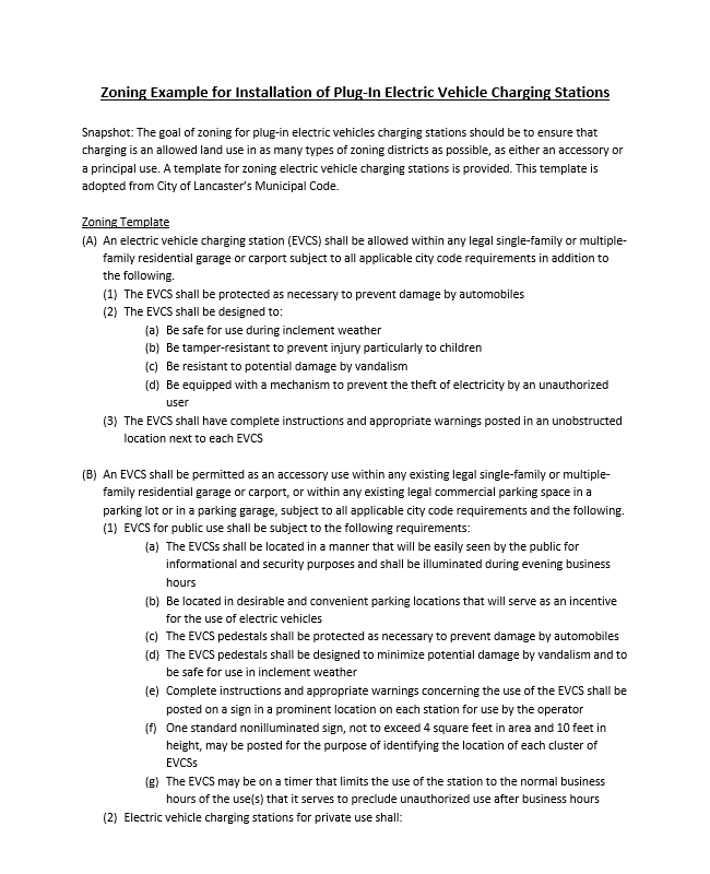 Planning and Zoning for Electric Vehicle Charger Deployment