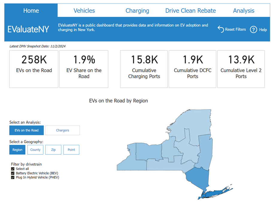 Source: EValuateNY Last week, we introduced several updates to the EValuateNY Dashboard, an interactive tool that consolidates and presents data on New York’s electric vehicle (EV) market. The dashboard integrates multiple data categories related to EVs, with most underlying datasets refreshed weekly and vehicle registration data refreshed monthly to ensure users have access to the most [...]