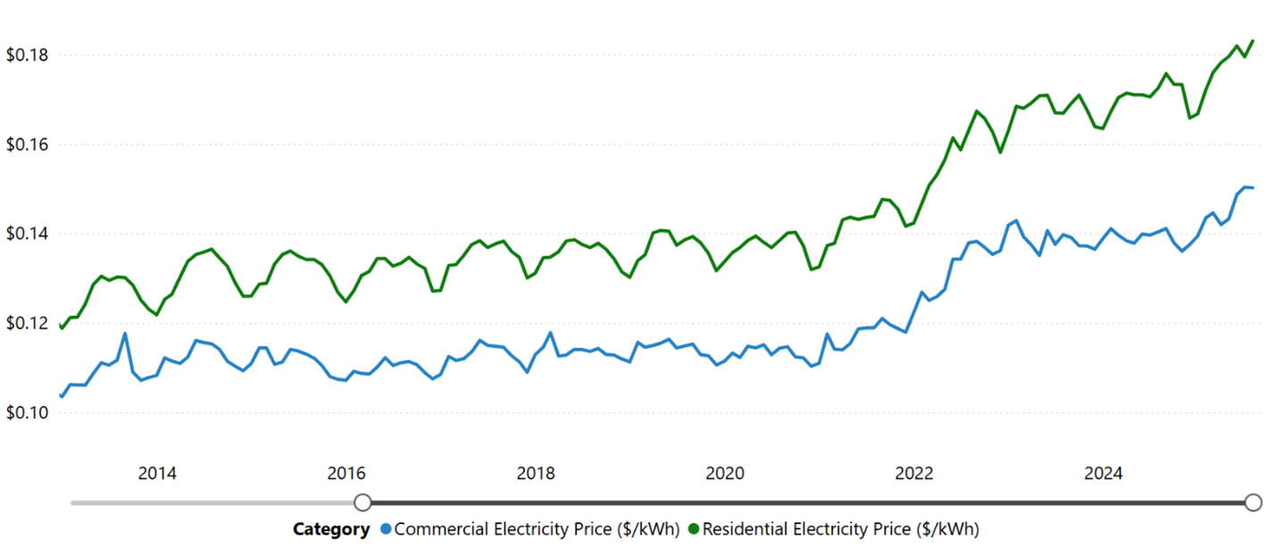 Figure 2. Residential Electricity Price ($/kWh) and Commercial Electricity Price ($/kWh) as of August 2025
