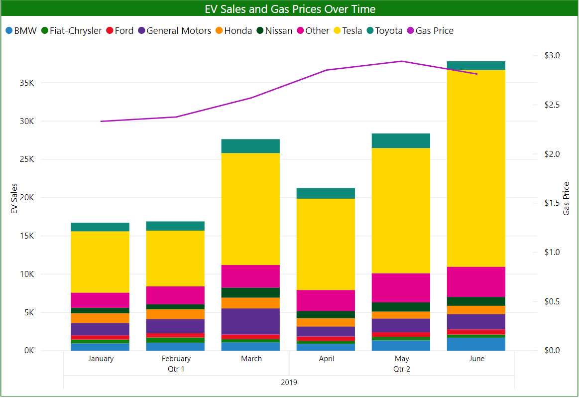 June saw the U.S. EV market post its strongest year-over-year growth for 2019 with sales 50 percent higher than the same time last year. High sales in June rounded out the second quarter and pushed year-over-year growth up to 27 percent over the second quarter of 2018. This growth marks a rebound for the market from the first quarter, which was only up 10 percent from the previous year. Without the Tesla Model 3 sales, however, the U.S. EV market would have shrunk by 21 percent in the second quarter and 18 percent in the first quarter compared to 2018, highlighting Tesla’s continued dominance.